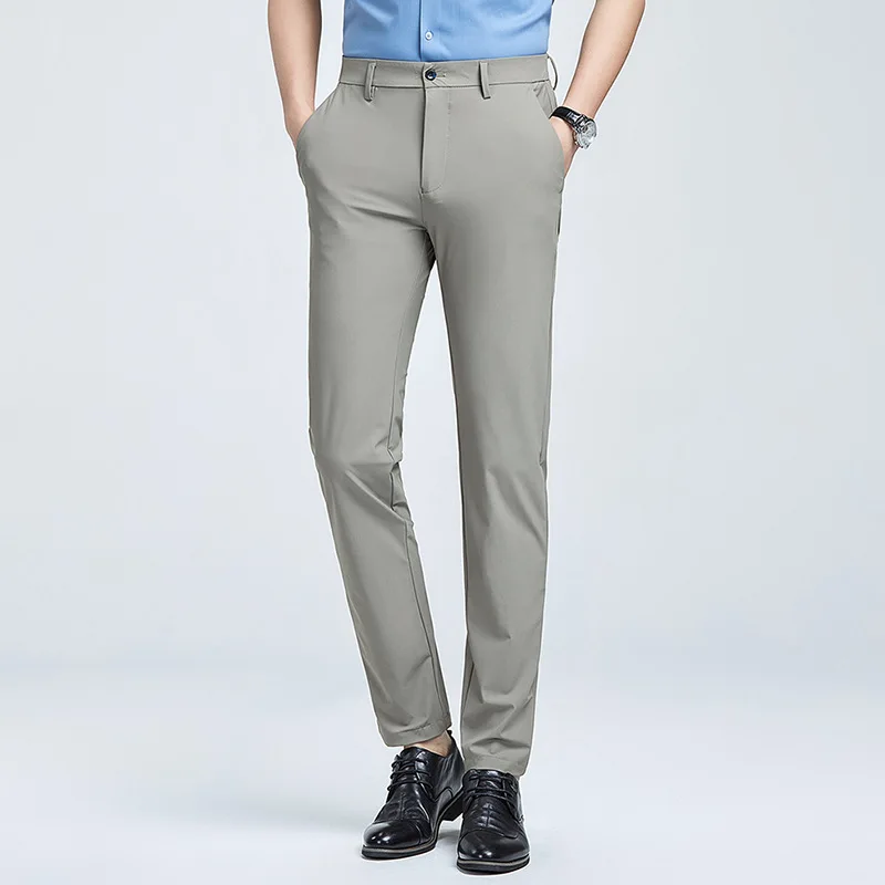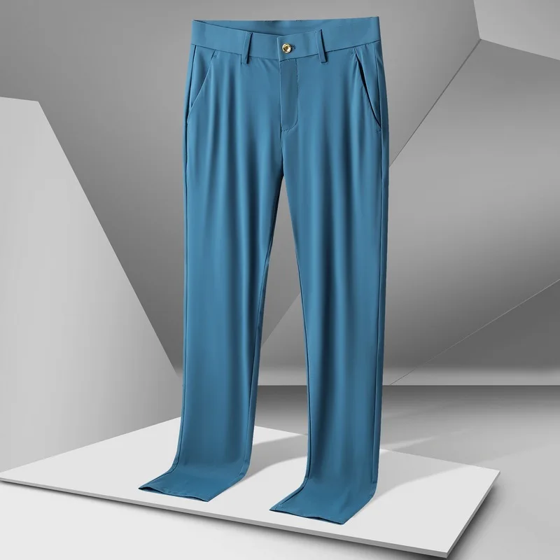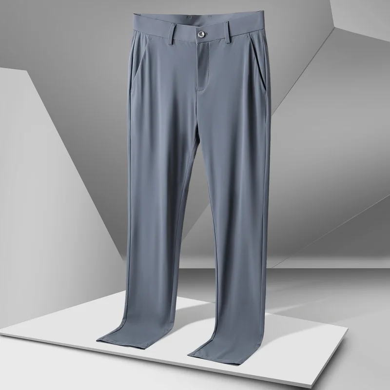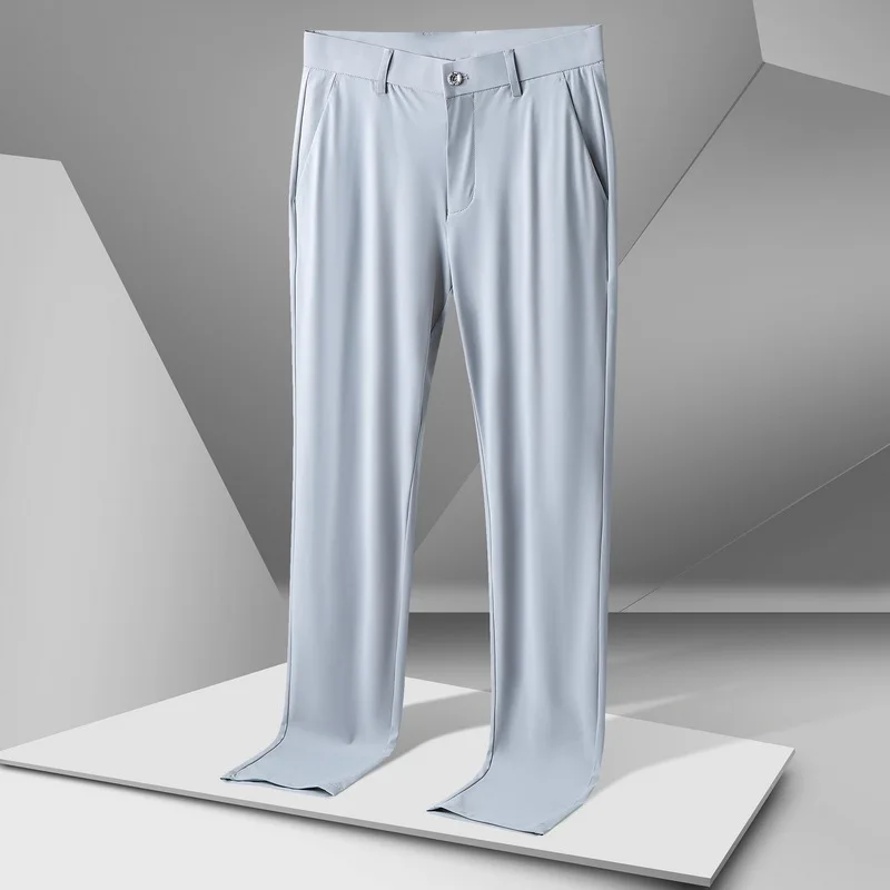 Men's Ice Silk Casual Pants New Thin Business Trousers Summer High Elasticity Straight-leg Non-iron Sports Pants